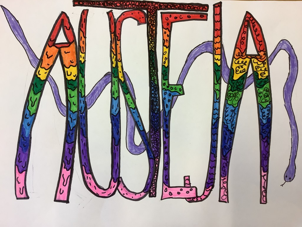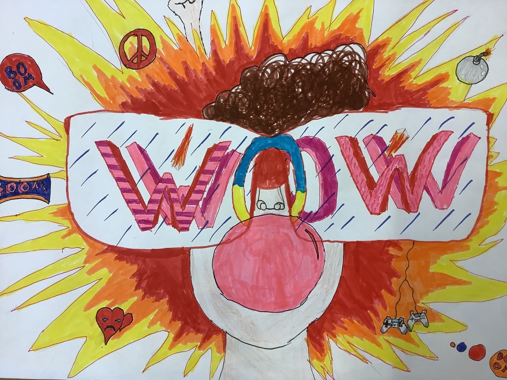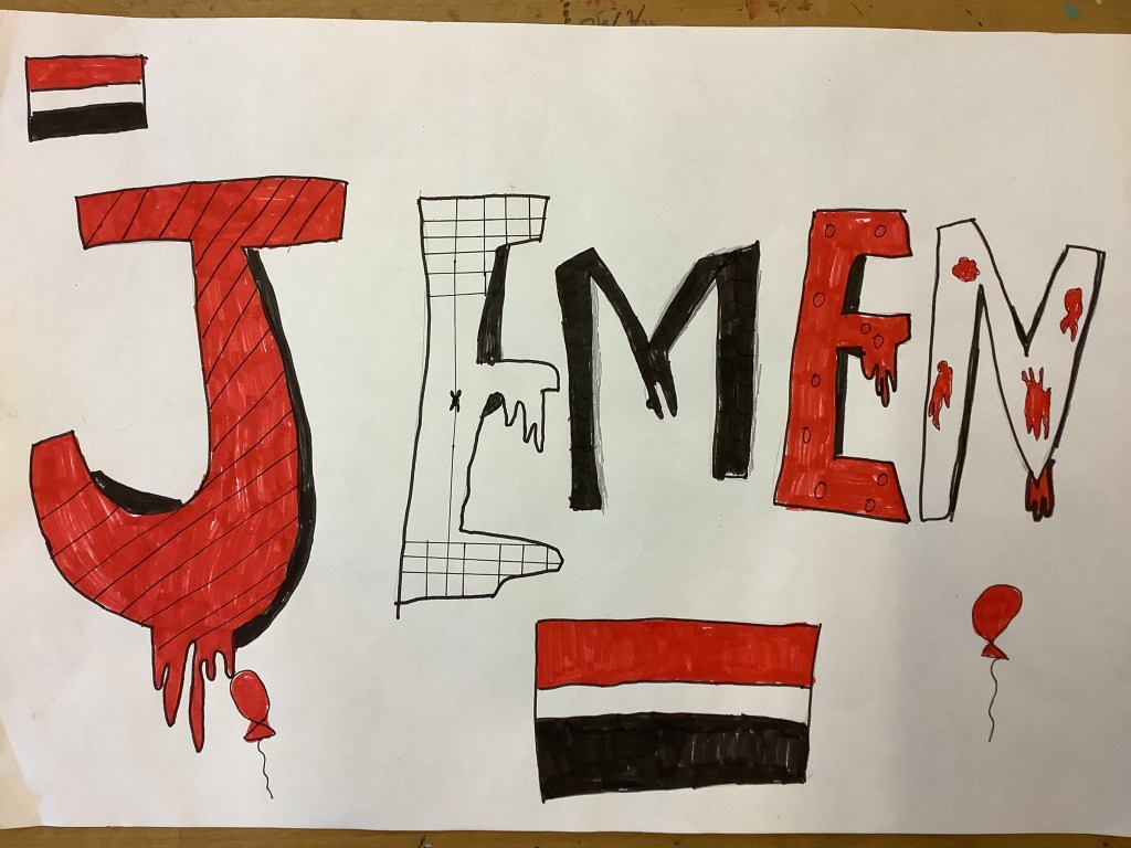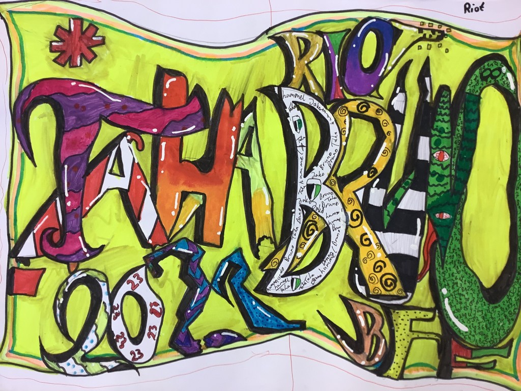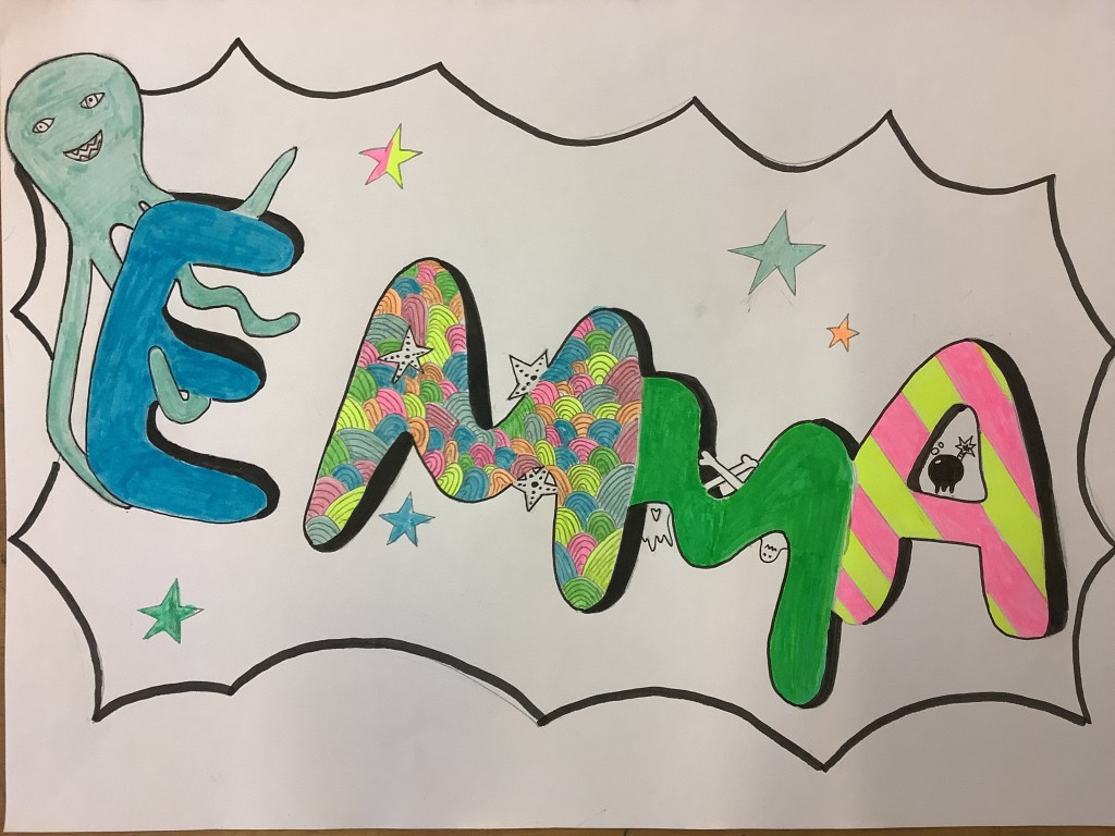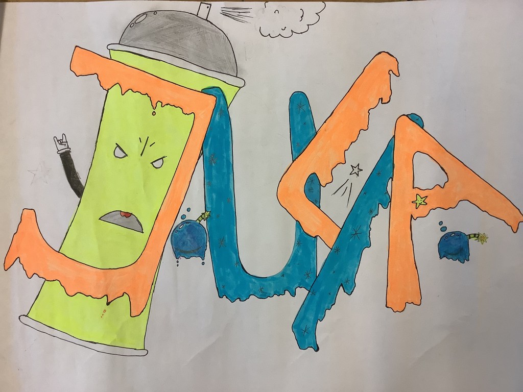 Die Abschlussarbeit war ein Graffiti A3 Bild, das alle Schüler*innen gemalt haben. Hier sind die Ergebnisse!