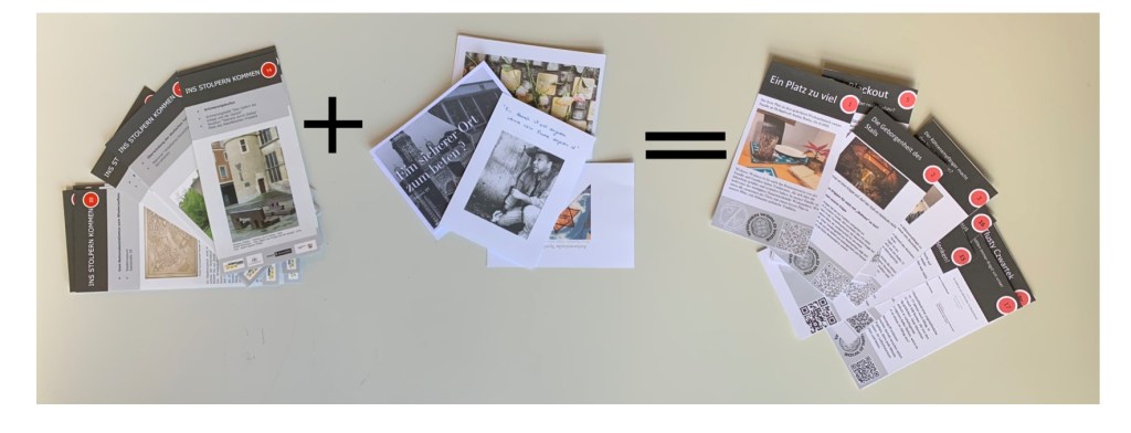 Die Inspiration für die Grundlage des Formates hatten wir von einer ehemaligen Projektarbeit des Geschichtskurses der Q1. Der Kurs gestaltete Karten und Websites mit QR-Codes zu dem Thema Gedenken an den Holocaust. Außerdem nutzten wir eine Flyer Vorlage der Stadt Münster, auf denen über Denkmäler in Münster aufgeklärt wird.